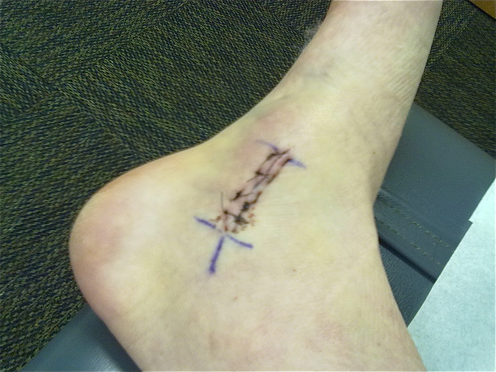 | Kind of blurry but the only pic I got of the stitches |